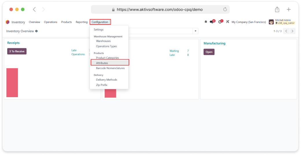 • Navigate to Inventory → Configuration → Attributes.