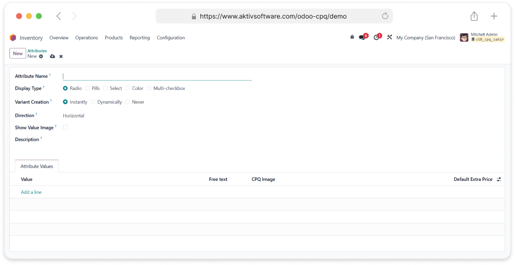 • Here, you can create new attributes and their values.