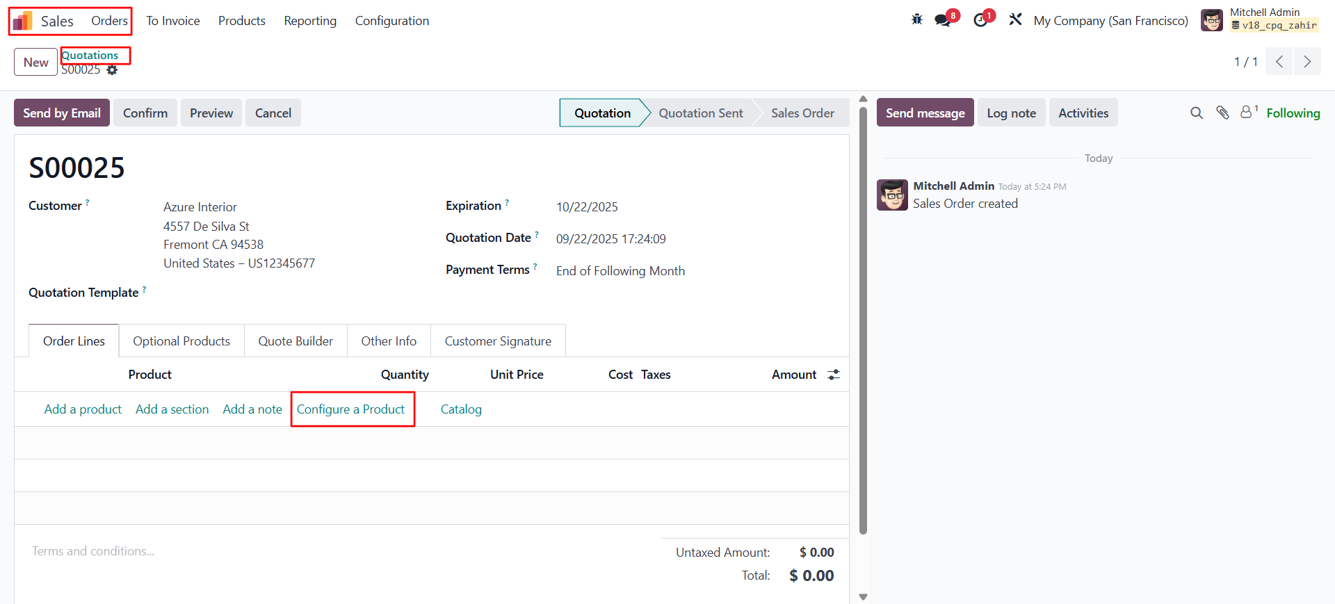 1. Sales → Quotation / Sales Order – Configure products while creating or editing a quotation or sales order.