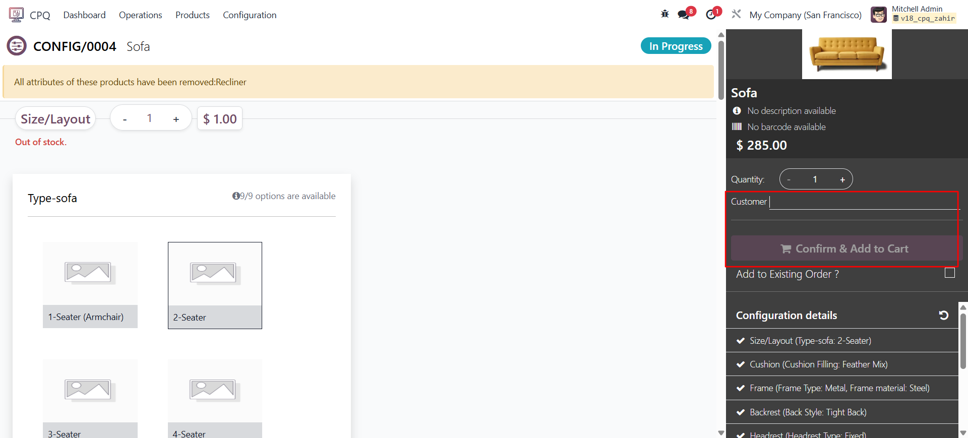 4. Configurable Product Overview (Sofa)