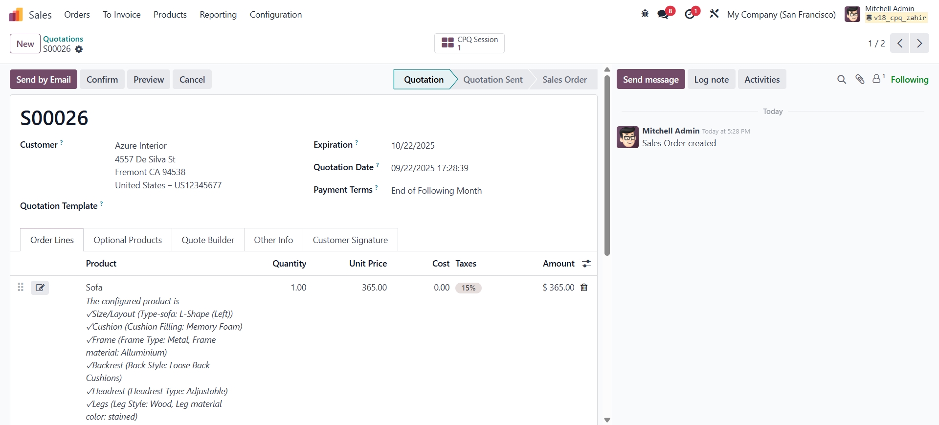 • The CPQ module is fully compatible with Odoo’s Pricelist functionality.