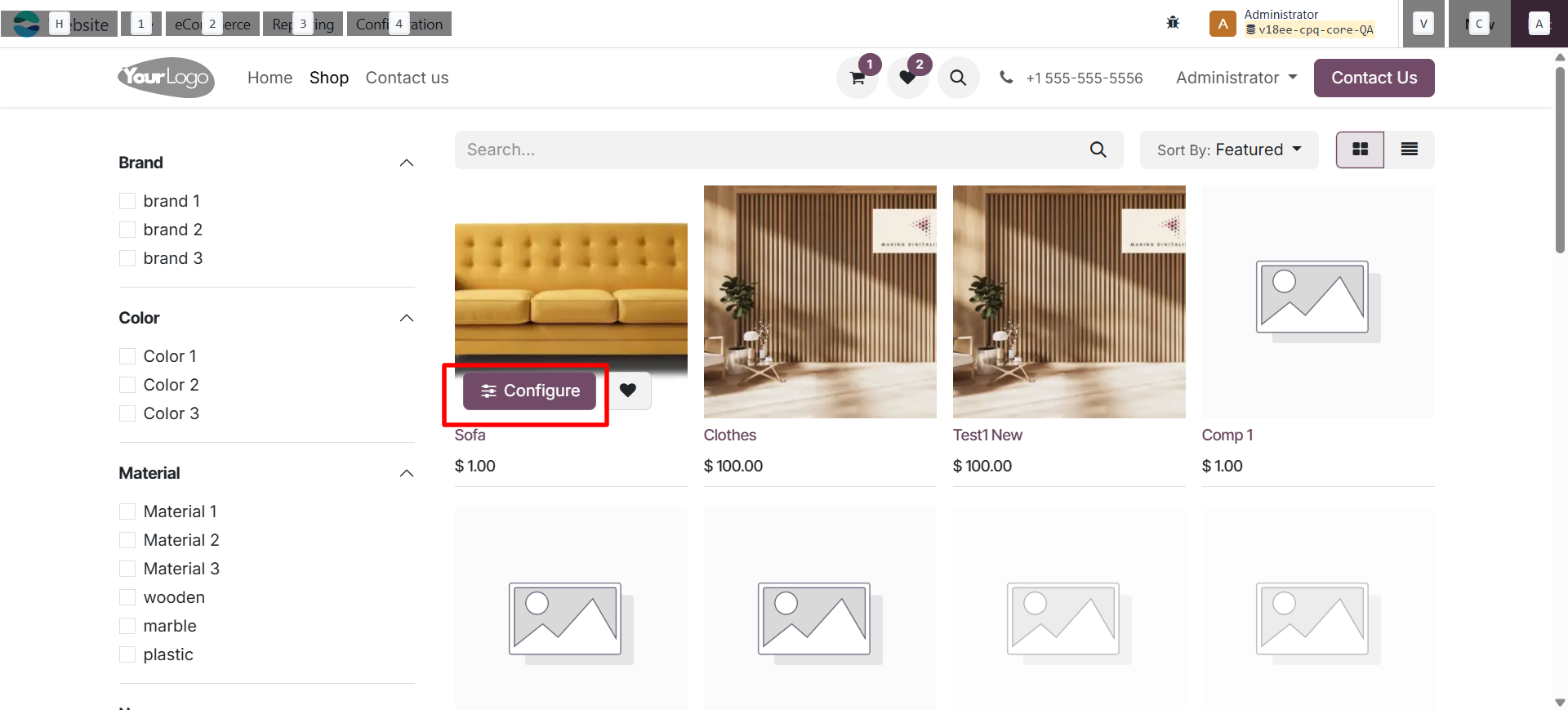 • Once enabled, configurable products on the website will show a Configure button.