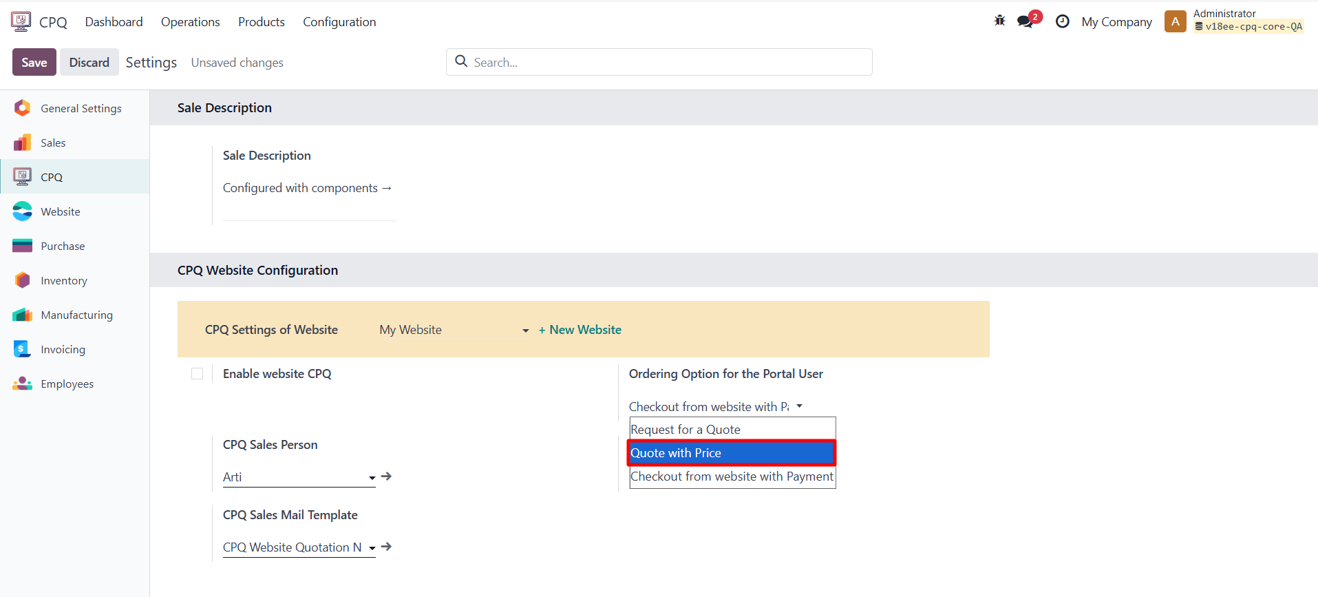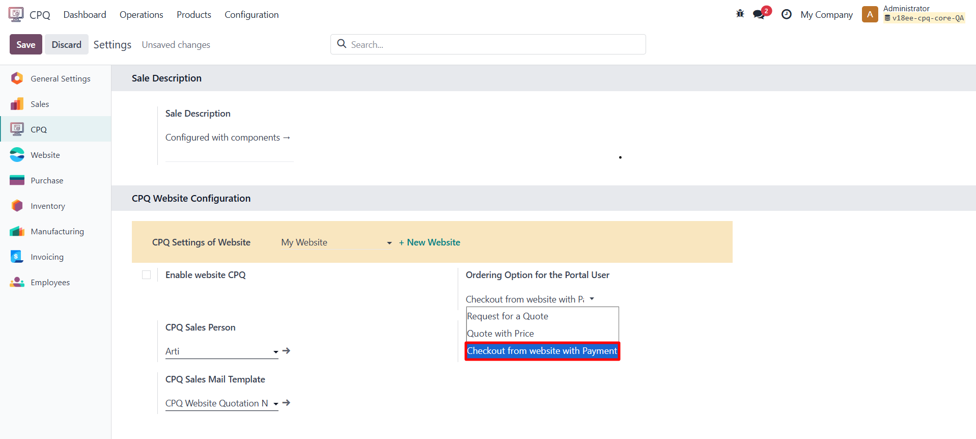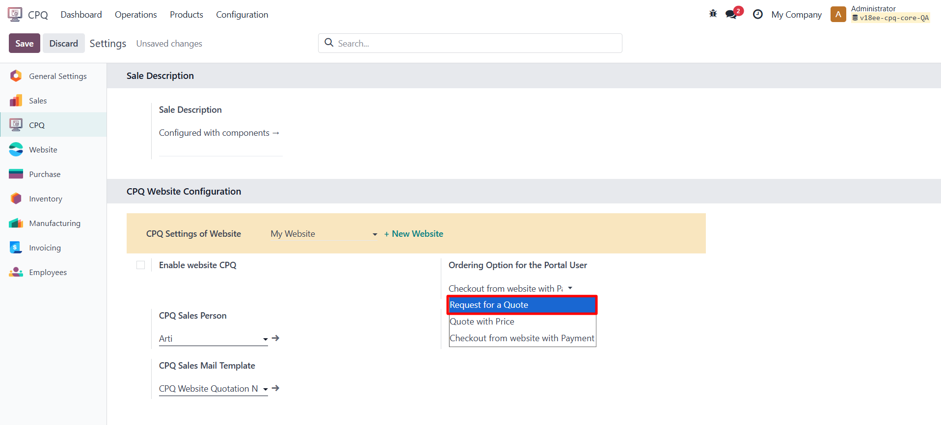 11.1 Enable Website CPQ