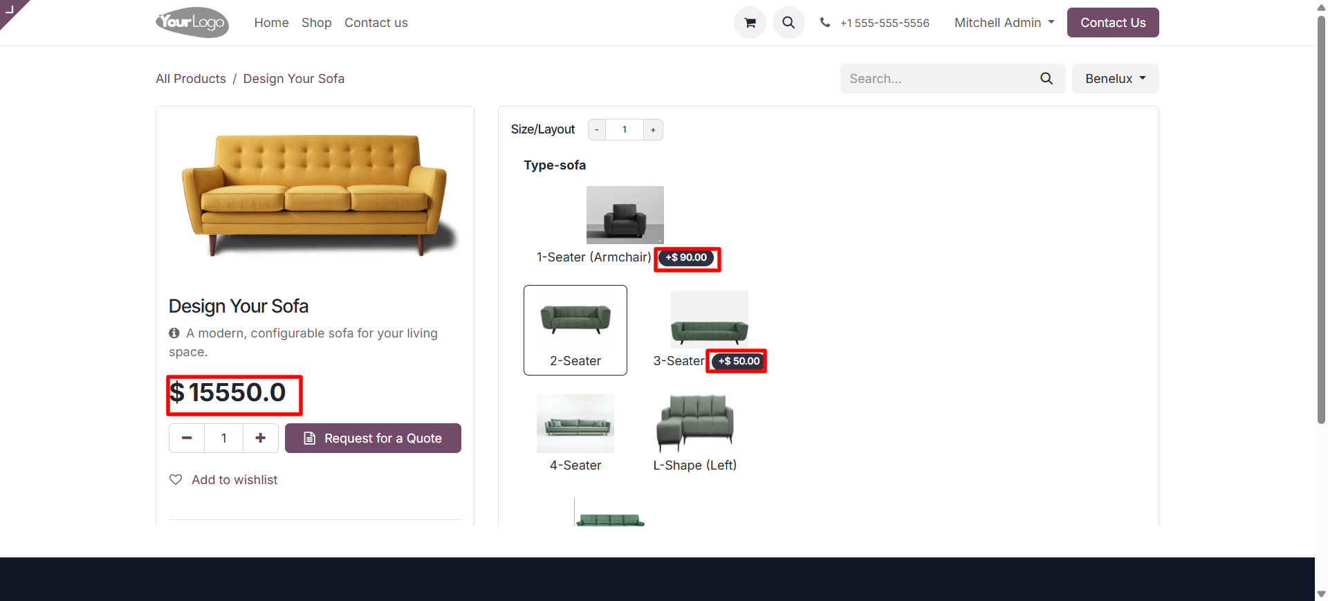 • The user can see the Configurable product price and generate a quotation directly.